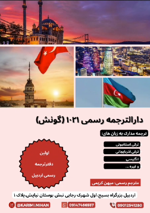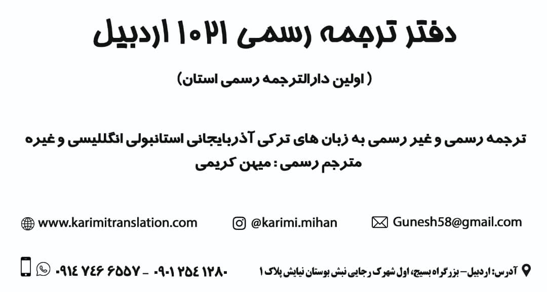 دارالترجمه رسمی 1021 در استان اردبیل با هدف تسهیل امور ترجمه و مشاوره حقوقی برای مراجعین محترم تأسیس شده است. این دارالترجمه با توجه به موقعیت جغرافیایی خاص استان اردبیل و نزدیکی آن به جمهوری آذربایجان، توانسته است خدمات خود را در زمینه ترجمه اسناد رسمی و غیررسمی به افرادی که نیاز به خدمات ترجمه برای امور تجاری، پزشکی، سرمایهگذاری و یا تعاملات بینالمللی دارند، ارائه دهد.